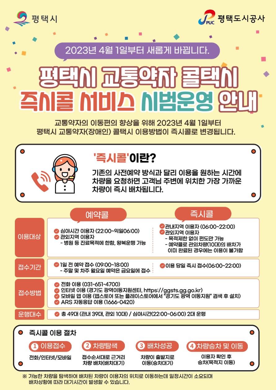 오늘은 평택시 교통약자 콜택시 즉시콜 서비스 시범운영에 대해 소개해 드리겠습니다.